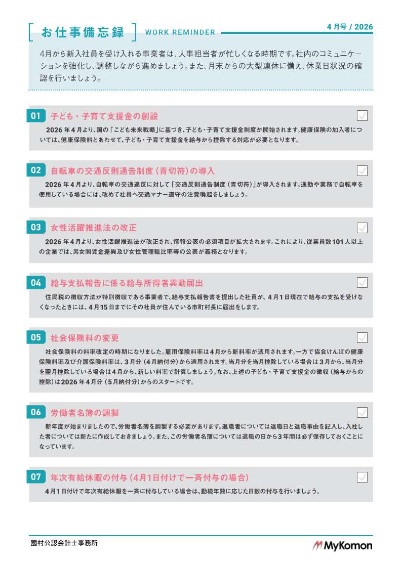 ★お仕事備忘録のPDFはこちら⇒ お仕事備忘録202604
